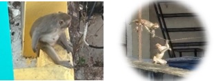 होटल की छत पर से बहुत देर तक बहुत दिनों बाद बंदरों को खेलते हुए, मस्ती करते हुए, अठखेलियां करते हुए देखा। रतलाम में बचपन में हमारे पुराने घर के आसपास खूब बंदर आते थे। पेट (pet) जैसे हो गए थे। पालतू जैसे हो गए थे। उनमें से कोई एक डाकी बंदर होता था जो ‘खी-खी’ करके डराता था, हम उसको छेड़ते नहीं थे। ऐसे ही यहाँ काफी देर तक मैं बंदरों की क्रीड़ा को देखता रहा और मज़े लेता रहा। छलांग लगा रहे हैं, लटक रहे हैं, जूँ निकाल रहे हैं पीठ के अंदर से।