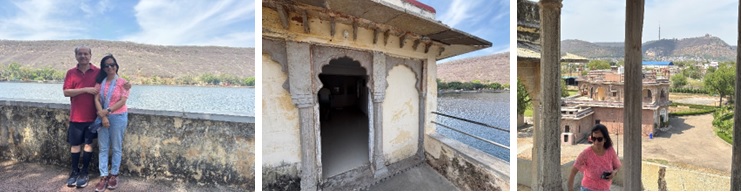 बूंदी शहर से कुछ बाहर, परिधि पर, आउटस्कर्ट्स पर एक बहुत सुंदर सा तालाब है। जैतपुरा तालाब… उसके किनारे एक छोटा सा भवन है। सुख महल पैलेस। मुझे इंदौर के सुख निवास पैलेस की याद दिलाता है। जहां पर एक झील थी। हम अपने एमबीबीएस के दिनों में पिकनिक मनाने जाया करते थे। अब तो आरआर कैट (RRCAT) का कैंपस है। आउट ऑफ़ बाउंड्स हो गया है इंदौर के नागरिकों के लिए। सुख महल का कैंपस भी बहुत प्यारा है। खूब सारे बंदर थे। यहाँ पर शासन का एक म्यूजियम भी है जिसमें उस इलाके की मूर्तियां,और बहुत सुंदर पेंटिंग्स भी हैं। सुख महल में ऊपर फर्स्ट फ्लोर पर जाकर पूरी झील का, जैतपुरा झील का किनारा बहुत प्यारा दिखता है। इसमें भी बहुत सारे आर्टवर्क्स हैं। ऊपर छत पर एक गेस्ट रूम है। गेस्ट रूम खुलवाया गया हमारे लिए हमारे गाइड के द्वारा। उसके बारे में इतिहास है कि साहित्य में नोबेल पुरस्कार विजेता प्रसिद्ध अंग्रेजी लेखक रुडयार्ड किपलिंग, [जिनका कि प्रसिद्ध उपन्यास “किम” है और जिनकी प्रसिद्ध रचना “जंगल बुक” है वो यहां पर कुछ दिन उस कमरे में रुका था। इस स्थान के बारे में उसने कुछ-कुछ अच्छी टिप्पणियां भी करी थीं।