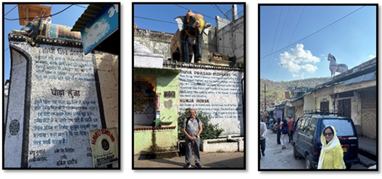 राजाओं और रजवाड़ों के जीवन में घोड़े और हाथी का महत्व था। वे युद्ध में काम आने वाले होते थे, उन्हें पालतू या पेट (Pet), जैसा प्यार देते थे। राणा प्रताप के महान घोड़े चेतक के बारे में सब जानते हैं। यहां पर ये एक हाथी और एक घोड़े की मूर्ति बूंदी में देखी जिसका कि वर्णन यहां पर लिखा हुआ है।